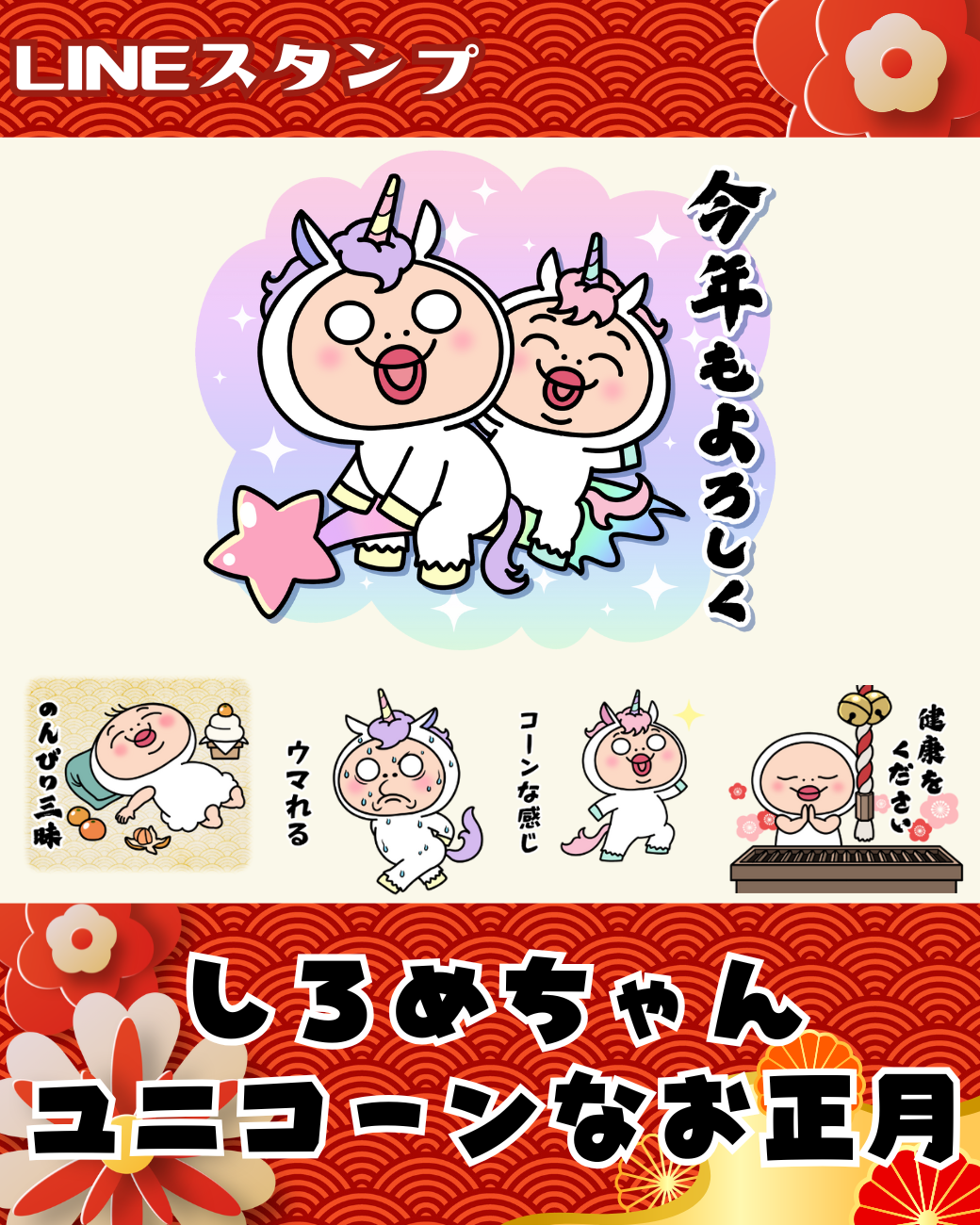 LINEスタンプ「しろめちゃん・ユニコーンなお正月」をリリースしました☆
