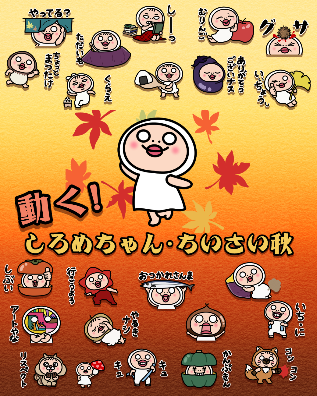 NEWスタンプリリース☆ 2025年10月20日2025年10月20日コメントする LINEスタンプ「動く!しろめちゃん・ちいさい秋」をリリースしました☆ 秋ダジャレ多めのサイズが小さいスタンプです。チェックしてね♡