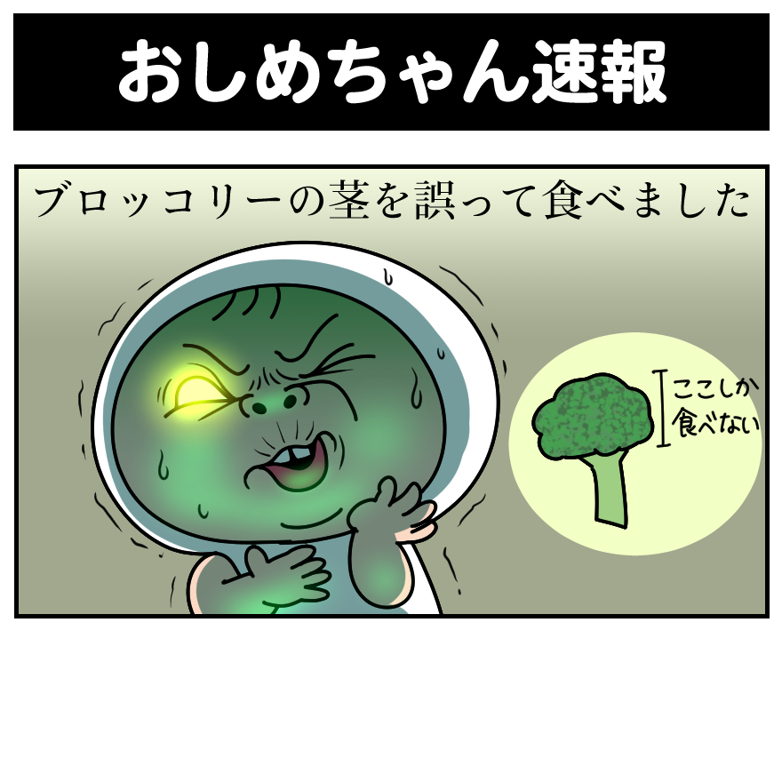 おしめちゃん速報 2025年11月6日2025年11月7日コメントする 頑張って飲み込んだ。 【ワイ調べ】 ブロッコリーの茎にはビタミンC・βカロテン・食物繊維が豊富に含まれている。 ビタミンCの抗酸化作用で免疫力を高める効果が期待できる。 また茎にはスルフォラファンという抗がん作用のある成分も含む。