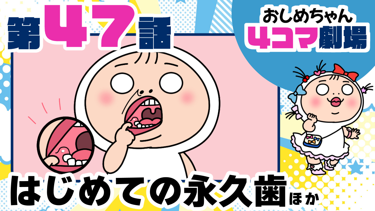 Youtube動画を公開しました☆ 2026年1月24日2026年1月23日コメントする Youtube動画「おしめちゃん4コマ劇場第47話」を公開しました☆ 永久歯生えた頃。 今はもうほとんど生え変わってきました。 このまま虫歯を経験せずに成長してほしいものです。