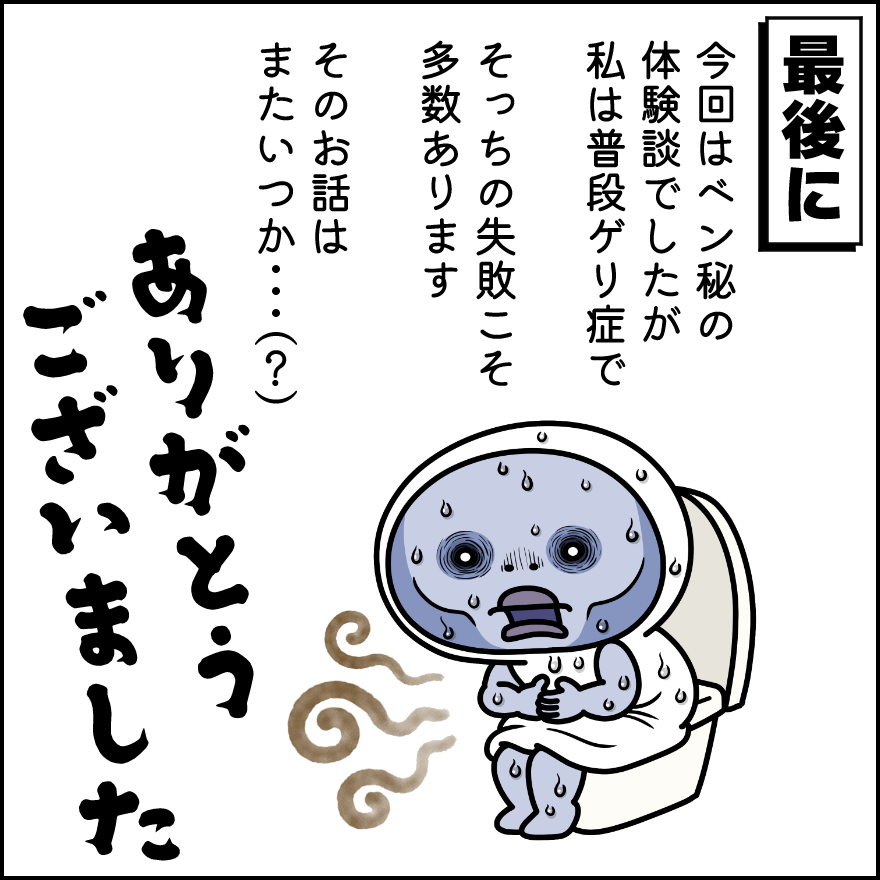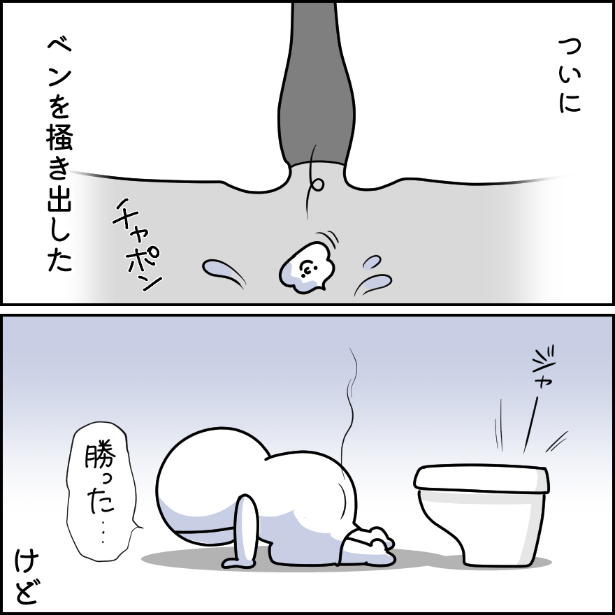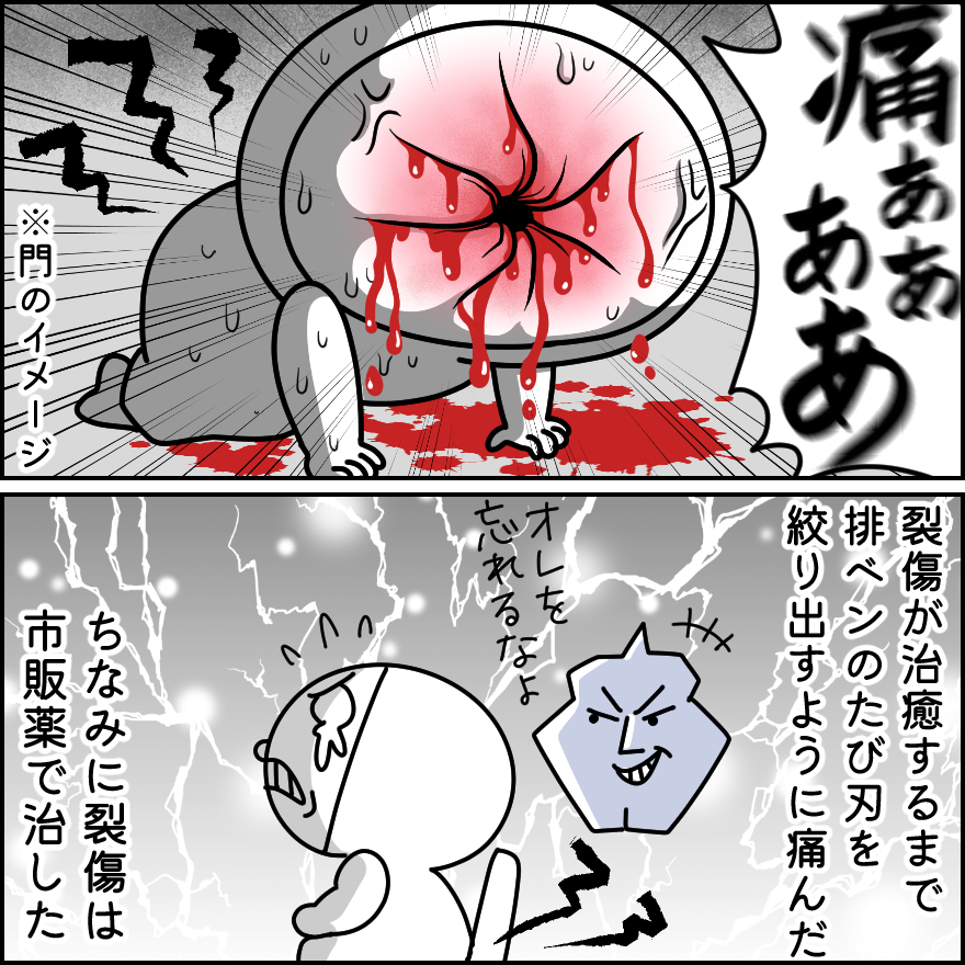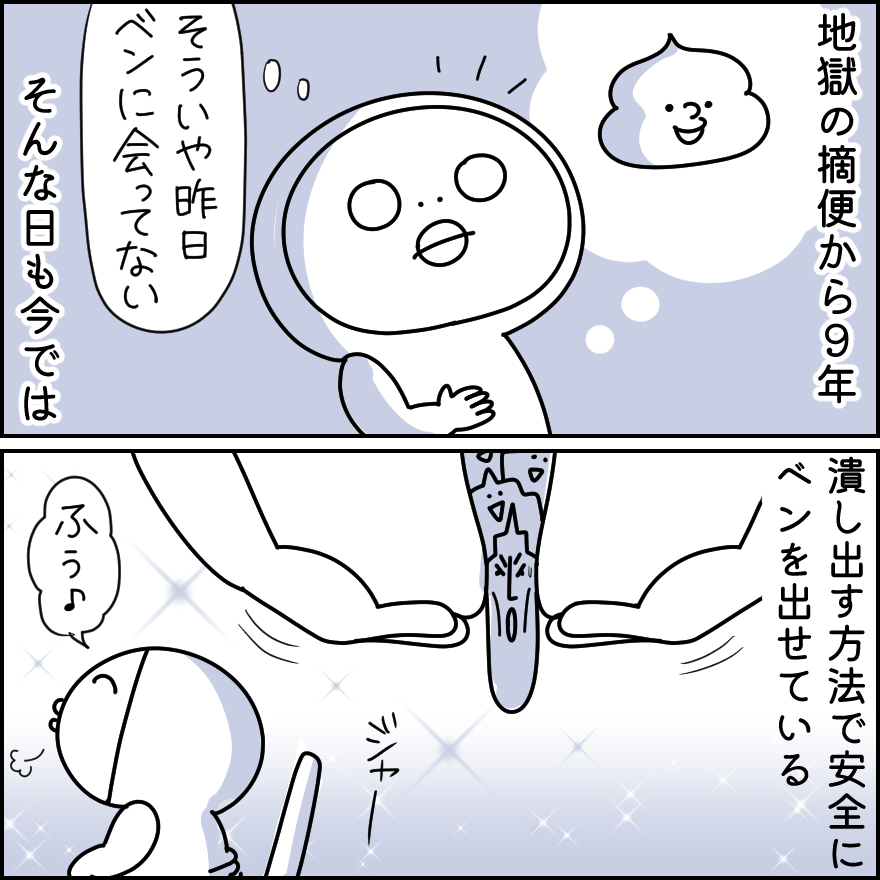 【実録】引き裂かれし肛門・完 2026年3月18日2026年3月18日1件のコメント 肛門が裂ける前に知りたかった「ベンを潰して出す方法」まだ知らない人に届け! コメントで経験者がたくさん居るとわかって驚きでした。 便秘に限らず、誰もが何らかの不調を抱えつつ暮らしているよね。みんなお大痔に。 【おしらせ】 次回作をこれから描きます。 完成までの合間、通常通りおしめちゃんとの日常漫画をクスりとお楽しみください☆